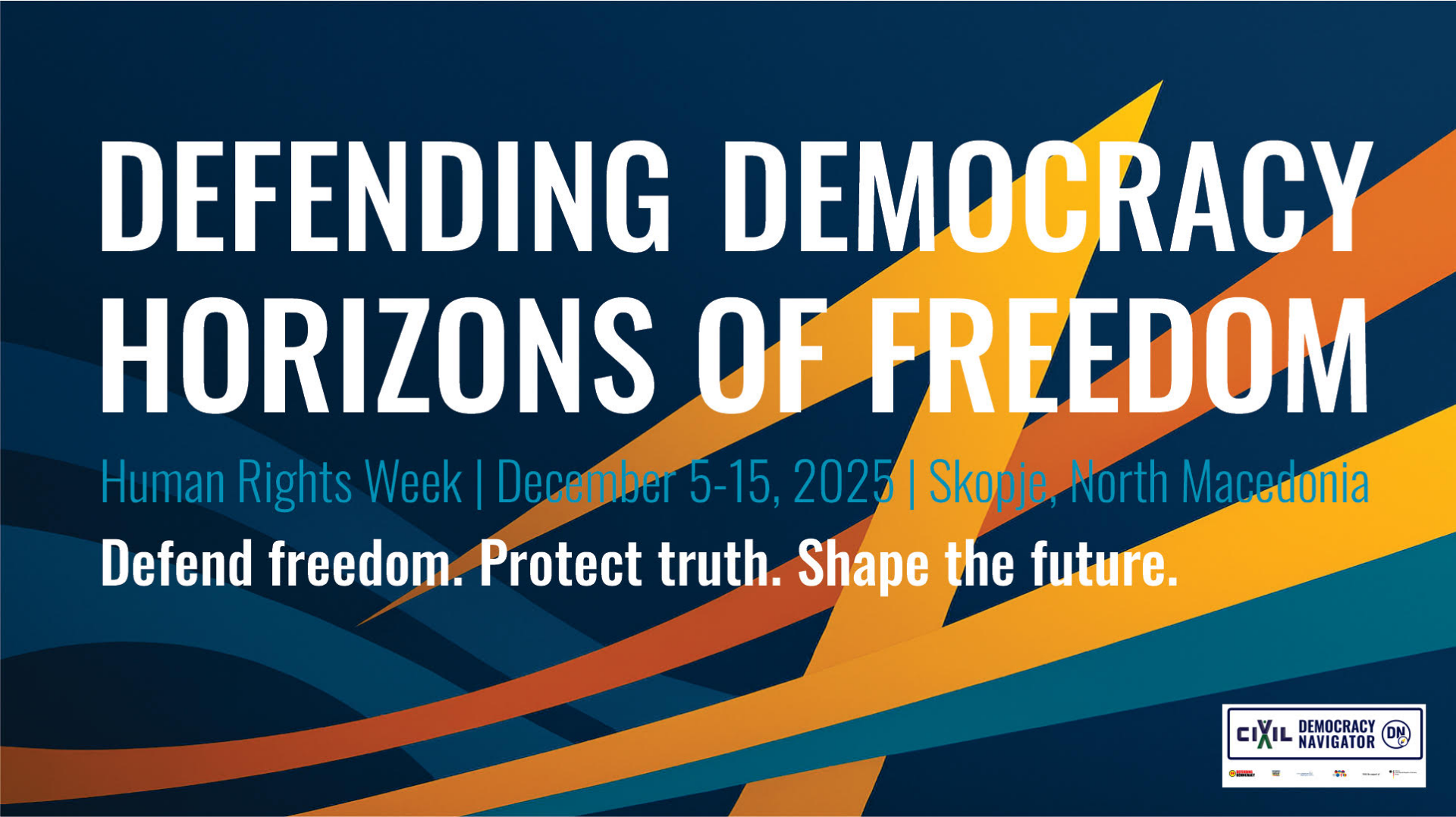 ЦИВИЛ – Центар за слобода ја најавува деветдневната стратешка, граѓанска и мултимедиумска програма Одбрана на демократијата: Хоризонти на слободата посветена на Неделата на човековите права 2025 година. Иницијативата, која се одржува од 5 до 15 декември во Скопје, ги обединува домашните, регионалните и меѓународните учесници со цел да се адресираат критичните предизвици со кои се соочува демократијата денес — од војната на Русија против Украина и хибридната војна против Европа, до дезинформациите и брзиот подем на вештачката интелигенција и ерозијата на човековите права ширум светот.