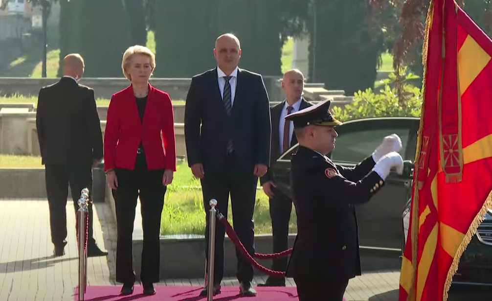 На церемонија со највисоки државни и воени почести претседателот на Владата на Република Северна Македонија, Димитар Ковачевски, денеска ја пречека претседателката на Европската Комисија, Урсула фон дер Лајен, која во придружба на делегација на Европската Комисија, престојува во официјална посета на Република Северна Македонија.