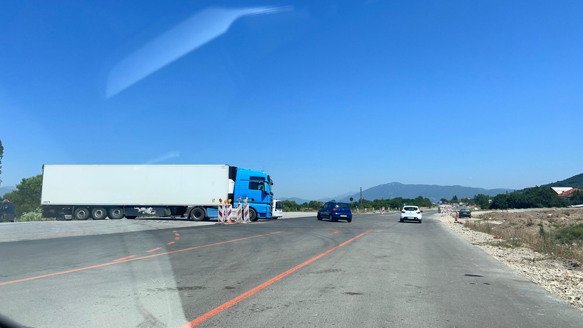 Повеќе од час автомобили не мрднуваа на самиот влез во Охрид, додека полицијата ја затвори главната сообраќајница поради државни и странски делегации. Официјалната причина беше посетата на премиерот Христијан Мицкоски на Заливот на коските и попладневната средба на претседателката Гордана Сиљановска-Давкова со албанскиот претседател Бајрам Бегај, по што двајцата вечерва присуствуваат на отворањето на 65. „Охридско лето“.