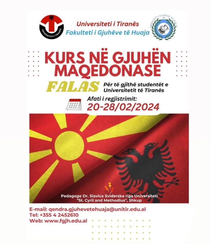 „Во рамки на соработката на Факултетот за странски јазици при Универзитетот во Тирана со Универзитетот „Свети Кирил и Методиј“ од Скопје, Северна Македонија ве информираме дека во тек е уписот за македонски јазик, како вон наставен предмет“, стои во објавата на факултетот.