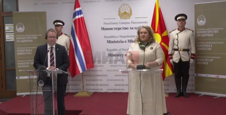 -Да и соопштам на мојата колешка, министерката Петровска дека Норвешка им донира на вооружените на Северна Македонија повеќе од 70 воени возила. Норвешка исто така поддржа неколку програми во одбранбениот сектор во Северна Македонија за унапредување на родовите прашања, за проект за борба против корупцијата, интегритетот во одбраната.  Очекуваме да ја продолжиме оваа соработка и во соработката со инженерскиот баталјон, како и во однос на зимската обука, алпинистичка обука. Исто така сме дел од балканските медицински воени сили. И разговаравме уште повеќе да ги интегрираме, да ја зајакнеме соработка помеѓу нашите сили во регионот, нагласи норвешкиот министер на прес-конференцијата во Министерството за одбрана.