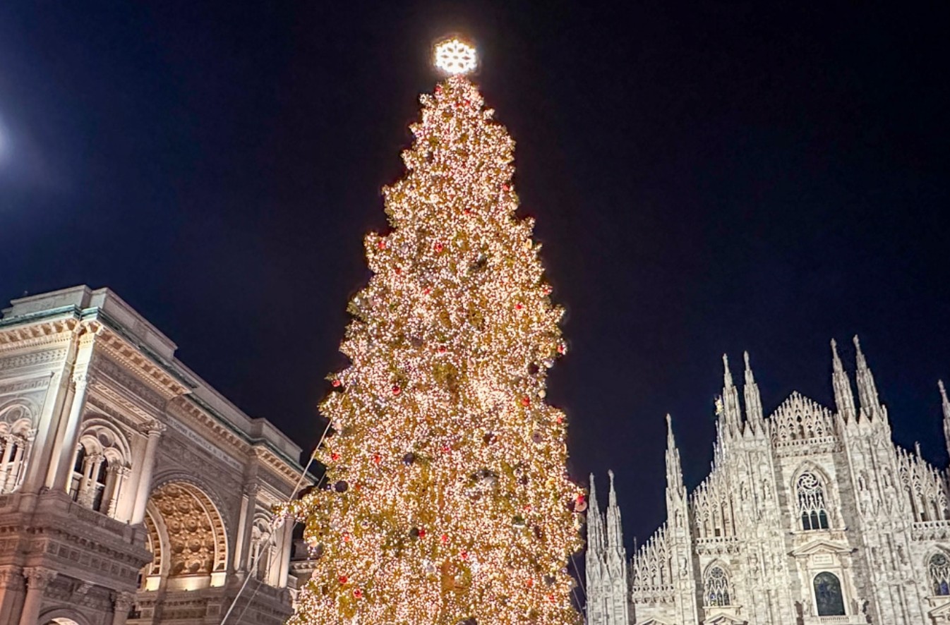 Елката во Милано, поставена на Пјаца дел Дуомо, годинава стана централна сцена на промотивното одбројување до Зимските олимписки и параолимписки игри „Milano Cortina 2026“, кои стартуваат во февруари. На традиционалното палење на светилките се собраа илјадници граѓани и туристи, а организаторите претставија 29-метарска елка и празнична инсталација отворена за јавноста до 6 јануари 2026 година.