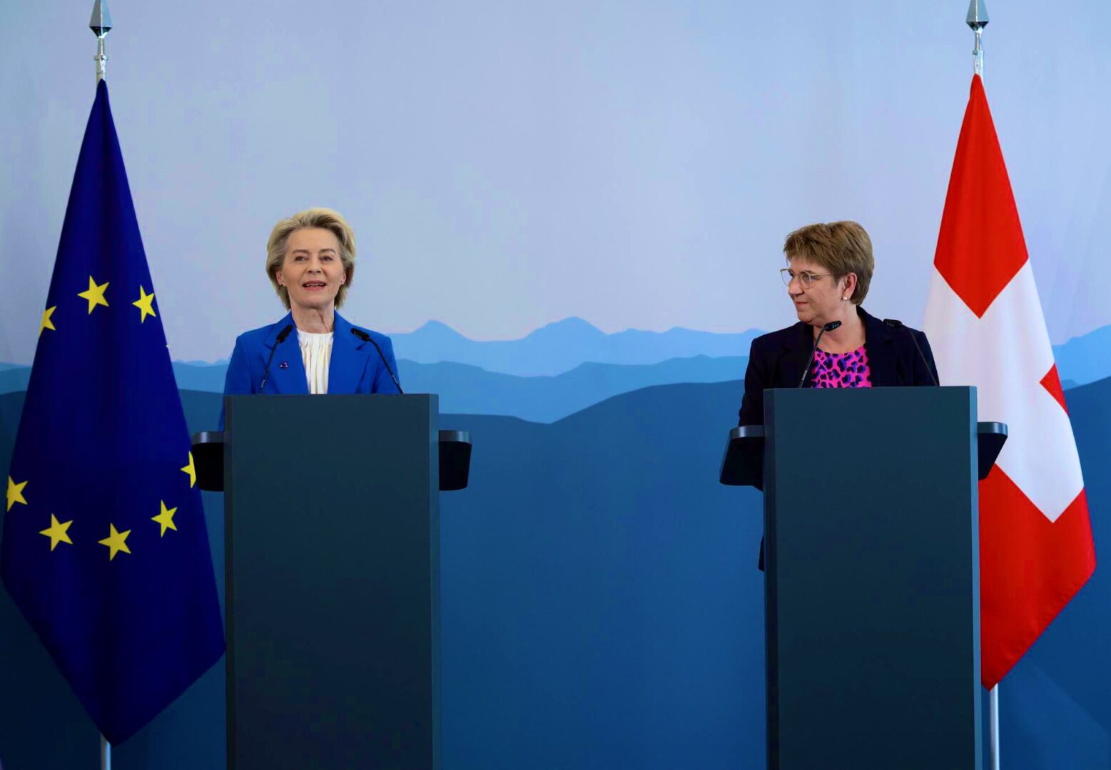 Швајцарската претседателка Виола Амхерд и претседателката на Европската комисија Урсула фон дер Лајен го објавија политичкиот договор на заедничката прес-конференција во Берн.