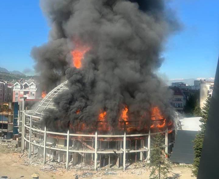 Огромни пламени јазици ја зафатија Универзалната сала во центарот на Скопје.