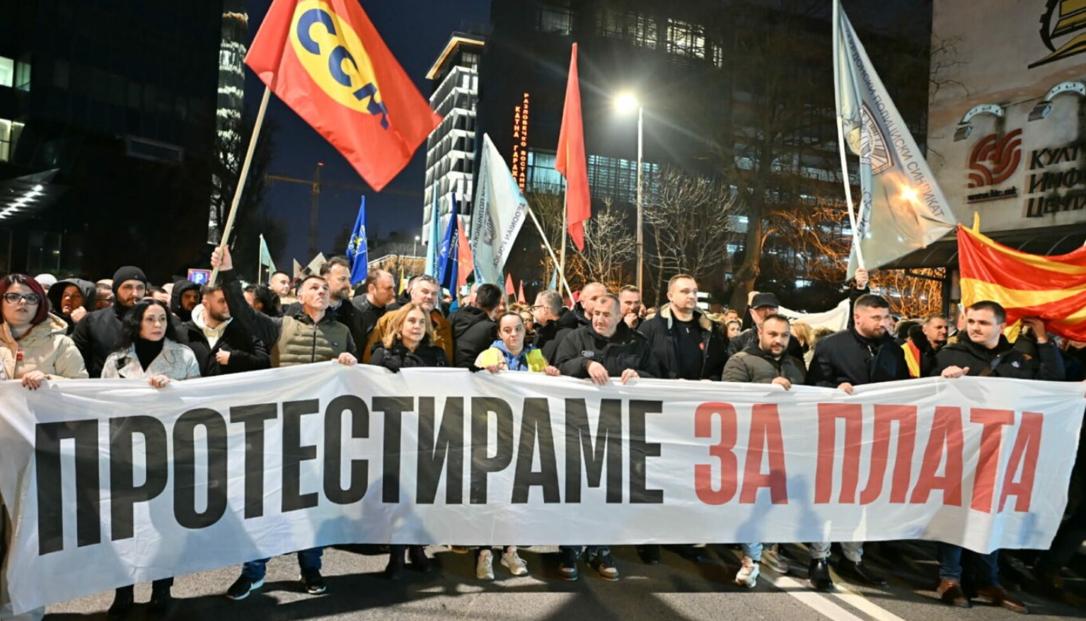 Илјадници работници попладнево излегоа на синдикален протест во Скопје, откако Сојузот на синдикатите на Македонија (ССМ повика на масовно изразување незадоволство поради, како што велат, падот на животниот стандард и застојот на платите. Протестот почна околу 17 часот пред зградата на ССМ и се одржа под мотото „Без договор на маса – протест на улица“, со централно барање минималната плата да се зголеми на 600 евра, а останатите плати линеарно да пораснат.