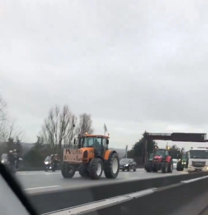 Земјоделци денеска го блокираа автопатот А1, еден од главните автопатишта во Франција што го поврзуваат Париз со северниот град Лил, земјите од Бенелукс и Велика Британија, предизвикувајќи километарски сообраќаен метеж.