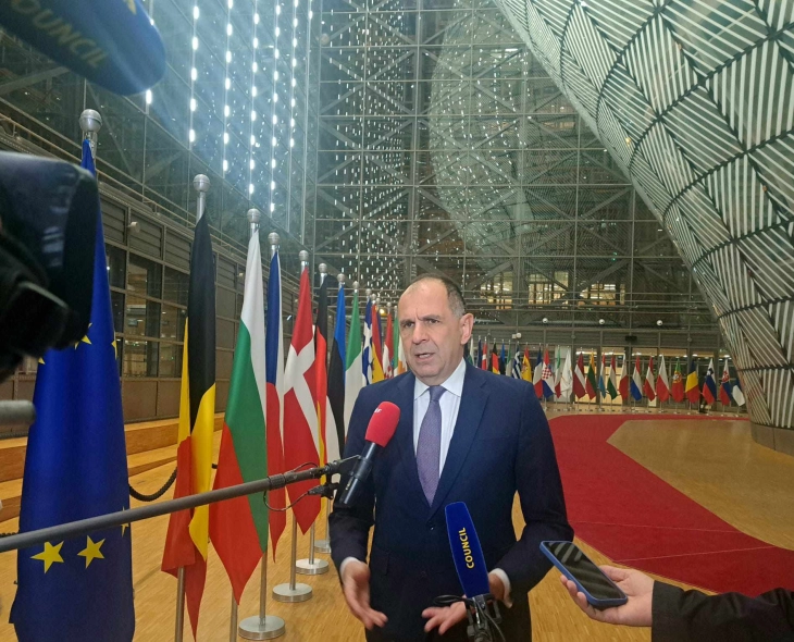При пристигнувањето на Советот за надворешни работи на ЕУ, шефот на грчката дипломатија истакна дека „безбедносната архитектура на регионот треба да биде под заштита на меѓународната заедница, а секое дополнително одложување во ваква критична фаза не може да биде опција“.
