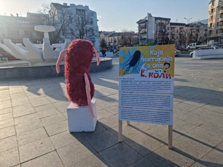 Младиот уметник Озбек Ајваз во утринските часови во Градскиот парк, кај фонтаната „Лотосов цвет“, имаше уште една од повеќето предвидени герили акции. Овој пат тој преку скулптура визуелно ја претстави бактеријата „Ешерихија коли“.