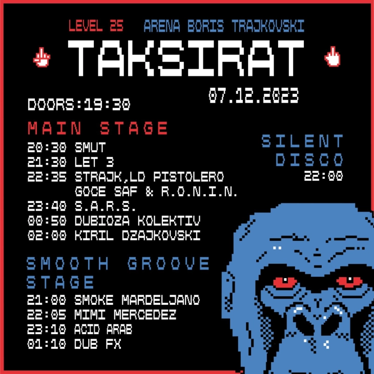 -Главната вечер годинава ги собира резидентите, имињата потпишани зад најмасовните концерти, артистите кои дефинираа жанрови, но и станаа белег на „Таксират“ или уште поважно, музичката екипа која во моменти одигра значајна улога во опстојувањето на фестивалот. Покрај нив, скопската Арена „Борис Трајковски“ вечерва е збирно место и на новата генерација, актуелниот бунтовен звук, но и светската алтернативна, транскултурна електронска сцена, стои во соопштението на „Пасворд продукција“.