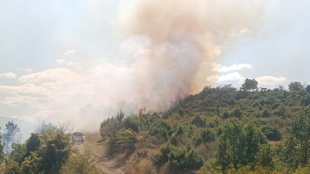 Според директорот на Дирекцијата за заштита и спасување (ДЗС) Стојанче Ангелов, огнот зафати ниска трева, грмушки и мешана шума, а поради силниот ветер пожарот брзо се шири.