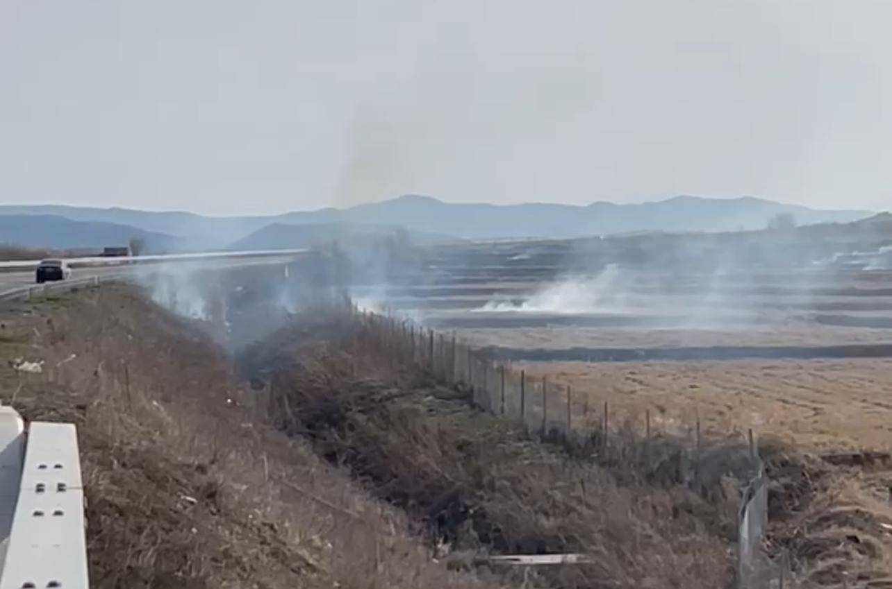 На патниот правец Пробиштип – Кочани денеска повторно можеше да се забележат запалени стрништа.