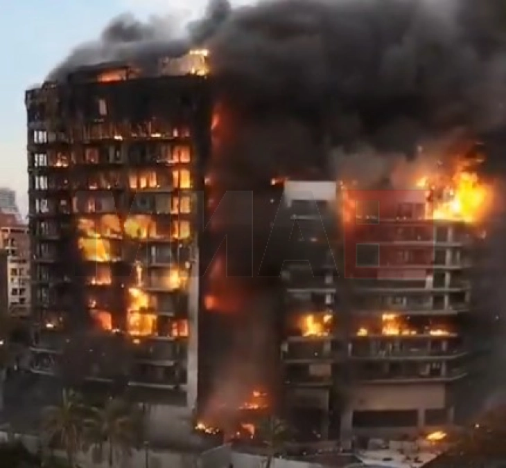 Една 14-катница во Валенсија е зафатена во огромен пожар и пожарникарите во моментов се борат со него за да ги спасат луѓето заробени во становите.