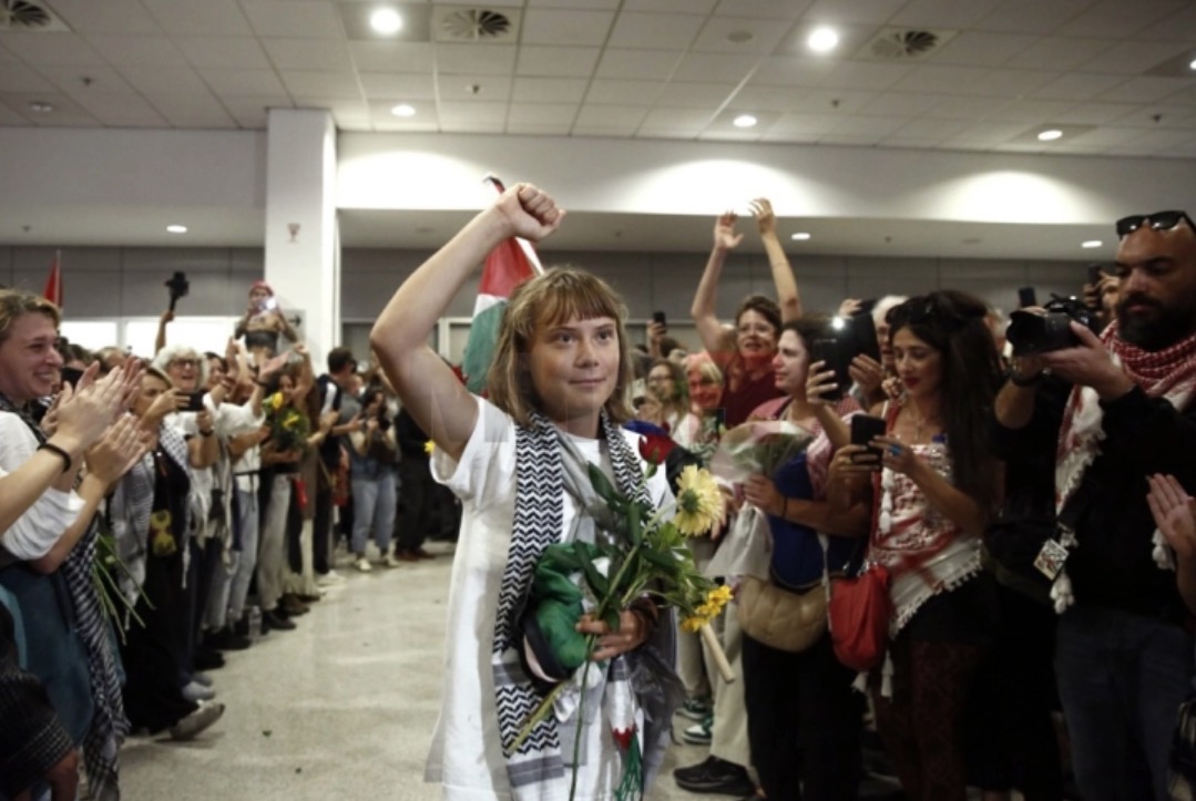 Шведската активистка Грета Тунберг синоќа слета во Атина по депортација од Израел, каде што заедно со стотици активисти беше приведена на отворено море за време на обид да се достави хуманитарна помош кон Газа. Информациите на грчкото МНР велат дека со истиот лет пристигнале 161 активист, а израелските власти соопштија дека вкупно 171 биле протерани во текот на вчерашниот ден – со што бројот на депортирани се искачи на 341 од 479 приведени при пресретнувањето на флотилата.