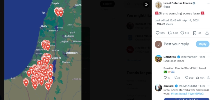 – Ќе ажурираме во реално време доколку од вас се бара да останете таму подолг период. Воздушната одбрана е целосно оперативна и ги пресретнува заканите секаде каде што е потребно, дури и во овој момент. Во овој момент, бројни авиони на ИАФ се во воздух, подготвени да се спротивстават на секоја закана, продолжи Хагари.