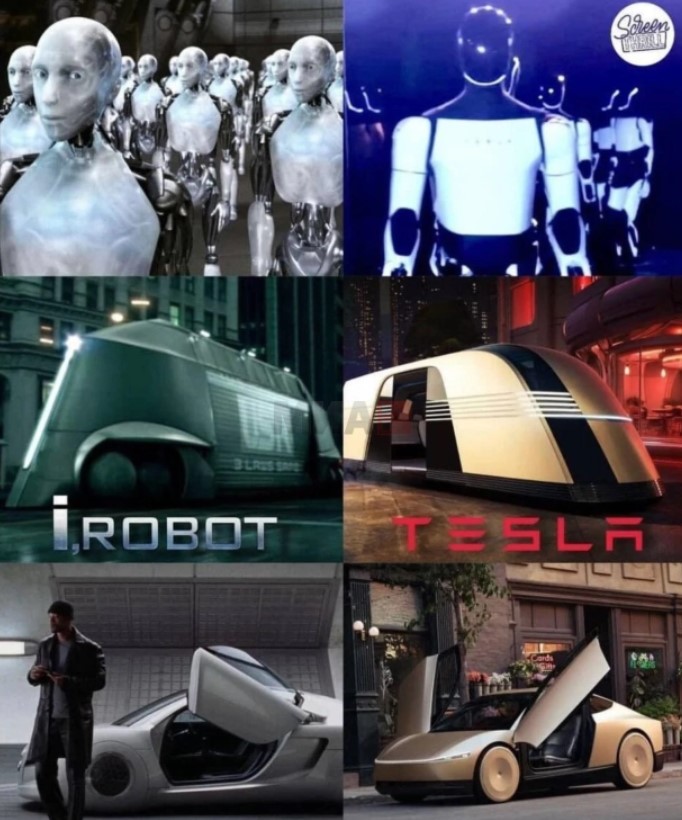 Режисерот и продуцент на филмот „Јас, робот“ (I, Robot), Алекс Пројес го обвини автопроизвоителот „Тесла“ и неговиот сопственик Илон Маск дека „го украле“ дизајнот, но и идејата за новите производи. Тоа се: „Сајберкеб“ (Cybercab) – самоуправувачки автомобил, „Робован“ или тн. „Робокомбе“ (Robovan) – возило за превоз на најмногу 20 луѓе и подобрени верзии на човековидните роботи „Оптимус“ (Optimus).
