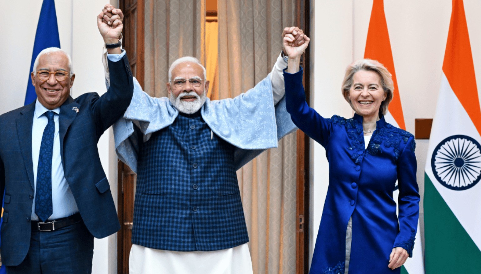 Европската Унија и Индија соопштија дека ги завршиле преговорите и постигнале договор за слободна трговија, по речиси две децении разговори што периодично застојуваа, а сега се забрзаа во услови на нови глобални трговски тензии и прегрупирања на сојузништвата. Договорот беше објавен на самитот ЕУ–Индија во Њу Делхи на 27 јануари 2026 година, каде што лидерите го претставија како економски и геополитички пресврт меѓу блокот од 27 земји и најнаселената држава во светот.
