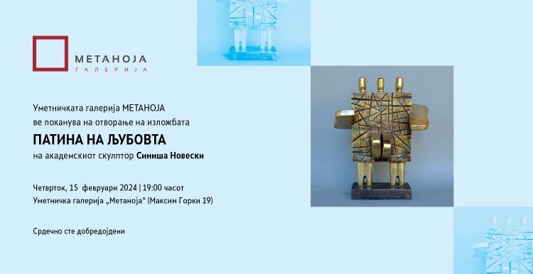 В четврток, 15 февруари, во 19 часот, галеријата „Метаноја“ во соработка со „Балканскиот институт за вера и култура“ ја отвора изложбата „Патина на љубовта“ на Синиша Новески.
