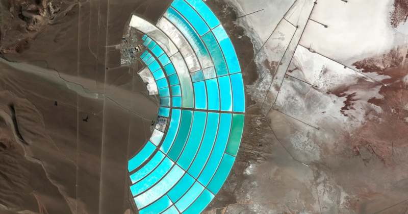 Во последните години поради растот на електричните возила и другите уреди на батерии, побарувачката за литиум се зголеми. Но, предупредувањата за претстојниот недостиг на овој метал во годините што доаѓаат поттикнаа дискусија да се отворат нови рудници за негово извлекување. Во 2023 година стартуваше проектот Каучари-Олароз во аргентинската провинција Јуџуј. Светло-зелените езерца за испарување се јасно видливи на оваа сателитска снимка. Литиумот се извлекува од солта на јужноамериканските салари – соли – со претворање во саламура која потоа се испарува за да се концентрира литиумот.