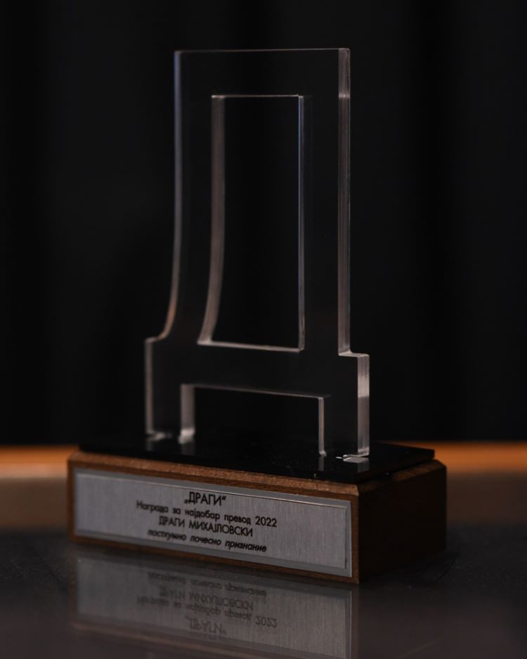 Наградата за најдобар превод на македонски јазик „Драги“ беше воспоставена во 2022 година, а првото почесно признание му беше доделено на Драги Михајловски (1951-2022), македонски писател, преведувач, есеист и универзитетски професор. Освен со прозните дела, Михајловски остави трајна трага во македонската култура со преводите на делата од Шекспир, Милтон, Шели, Китс, Блејк, Елиот, Милтон итн. Објави и неколку студии и есеи од областа на теоријата на преводот, а со своите ставови за преводот влијаеше и на студентите на Филолошкиот факултет „Блаже Конески“ во Скопје, каде што беше професор.
