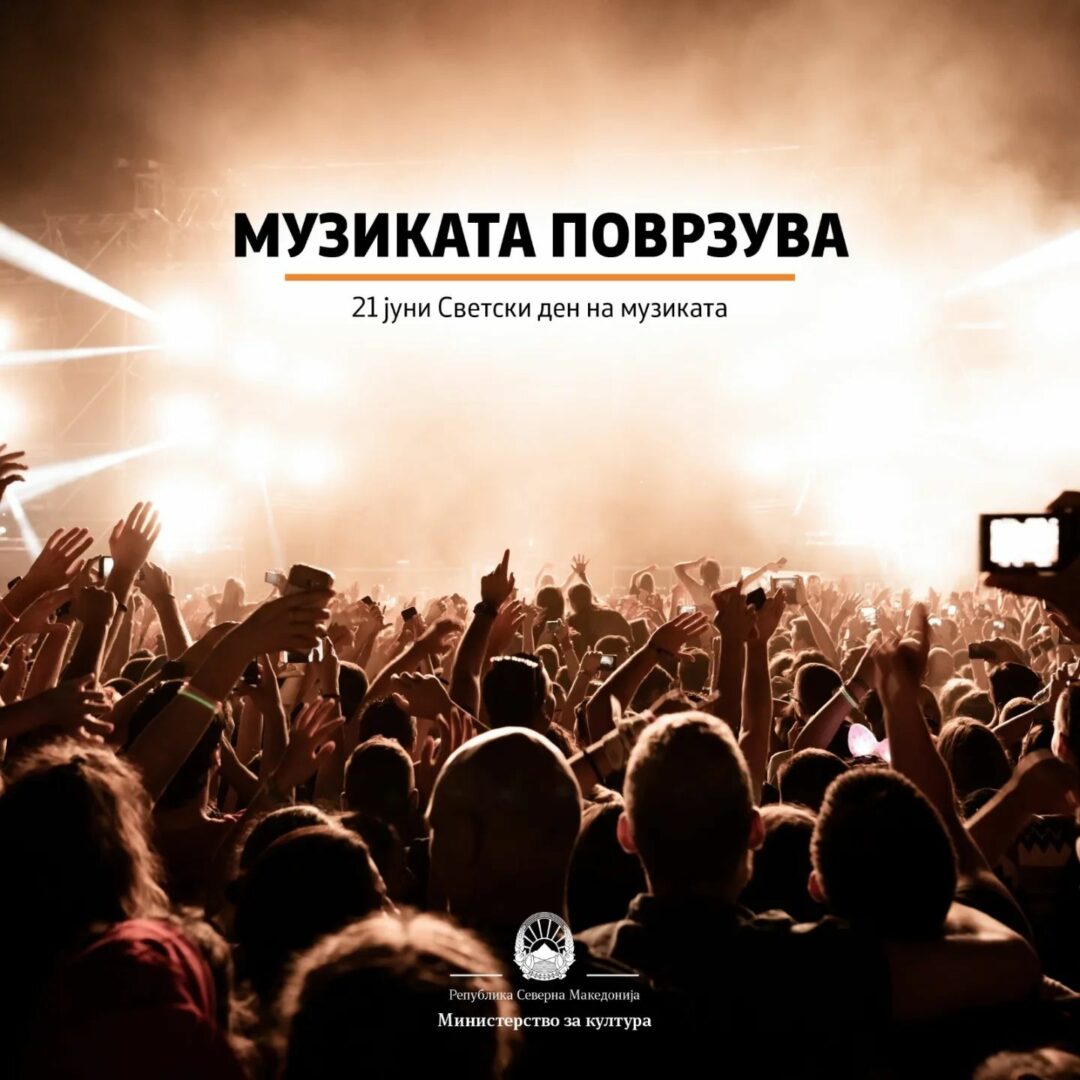 „Денеска, на Светскиот ден на музиката да ја прифатиме моќта на музиката во целата нејзина разновидност на богатите култури што таа ги претставува“, пишува на социјалните мрежи министерката за култура Бисера Стојчевска-Костадиновска.