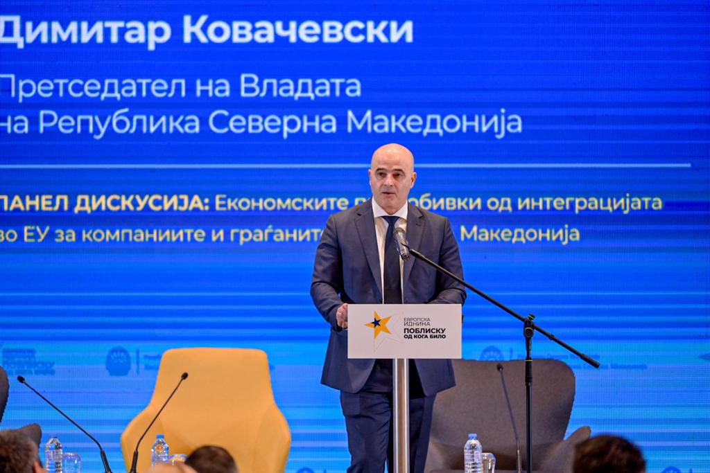 „Искуствата велат дека со членството во ЕУ платите и пензиите ќе се зголемат меѓу 70-90 проценти и тоа е за очекување дека ќе се случи и за нас. Евроатлантската ориентација на нашата држава донесе највисоко ниво на странски директни инвестиции од 754 милиони евра, во најкризната година 2022, затоа што инвеститорите сакаат стабилен и безбеден амбиент за вложувања. Имаме, речиси двојно повеќе странски директни инвестиции од 2016 година, кога изнесуваа 338 милиони евра“, потенцираше Ковачевски и дополни дека „со интеграција во ЕУ, ние од нашите странски партнери и инвеститорите ќе добиеме дополнителна доверба, што ќе рефлектира со драстично поголем број на инвестиции во државата“.
