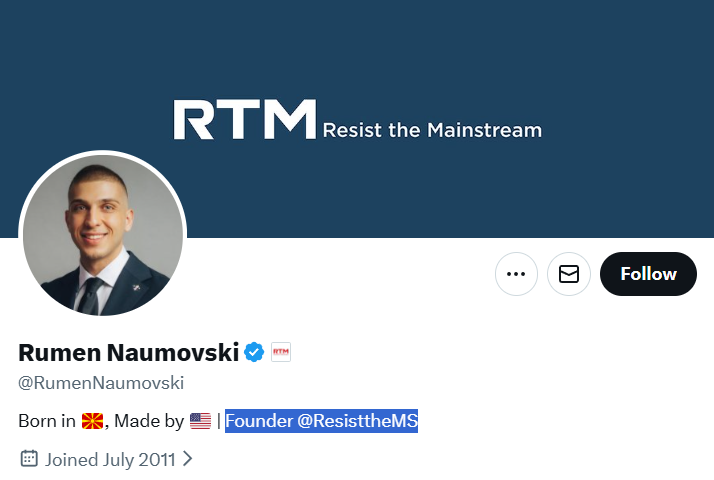 Два големи про-MAGA профили во X – @ResisttheMS (450 илјади следбеници) и @DefiantLs (1,6 милиони следбеници), посебно се истакнуваат со вакви акативности. Овие профили се врзуваат за името на извесен Румен Наумовски од Велес, кој води два големи про-MAGA профили во X – @ResisttheMS (450 илјади следбеници) и @DefiantLs (1,6 милиони следбеници).