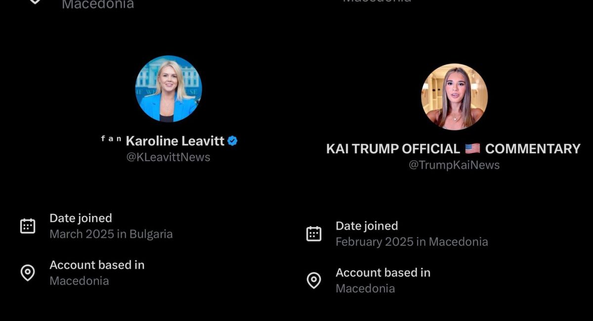 Мрежа од лажни про-Трамп профили од Северна Македонија се појавија на на X (порано Твитер), користејќи идентични модели на профили и координирани пораки во поддршка на MAGA. Тие се претставуваат како американски корисници, објавуваат слични политички тези и добиваат ангажман преку провокативна содржина.