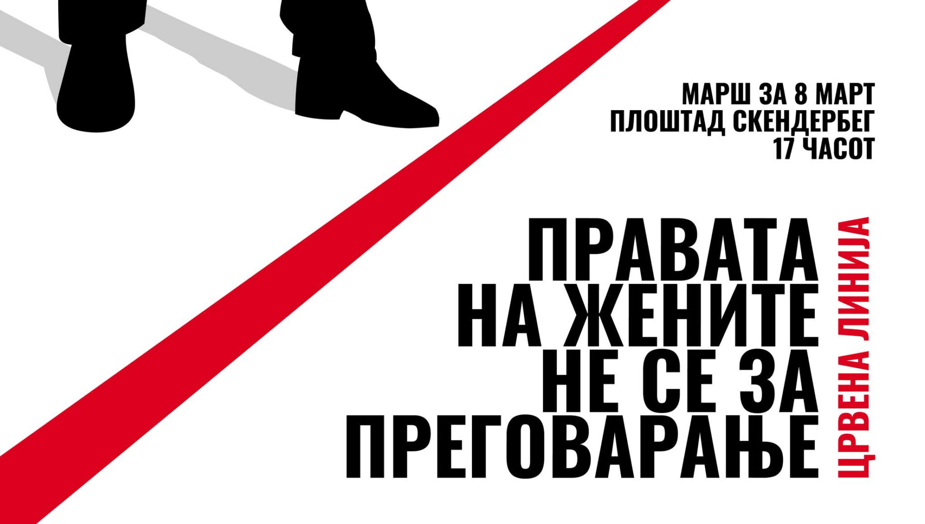 По повод Меѓународниот ден за економска, политичка и општествена борба за рамноправноста на жените – 8 Март (петок), ве повикуваме кон колективна акција, колективен протест и колективен марш во заедничката борба за рамноправност и родова еднаквост. Оваа година маршираме под слоганот „Црвена линија: Правата на жените не се за преговарање“, со почеток од 17:00 часот на плоштадот Скендербег, пишува во соопштението по овој повод неформалната група „Тиииит! Инк“.