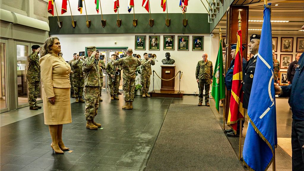 Министерката Петровска во врховната сојузничка команда на НАТО во Монс беше пречекана со македонската химна