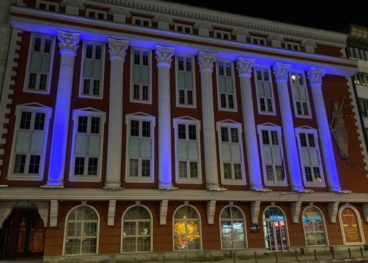 Во пресрет на утрешниот Светски ден на детето вечерва Министерството за правда е осветлено во сина боја.