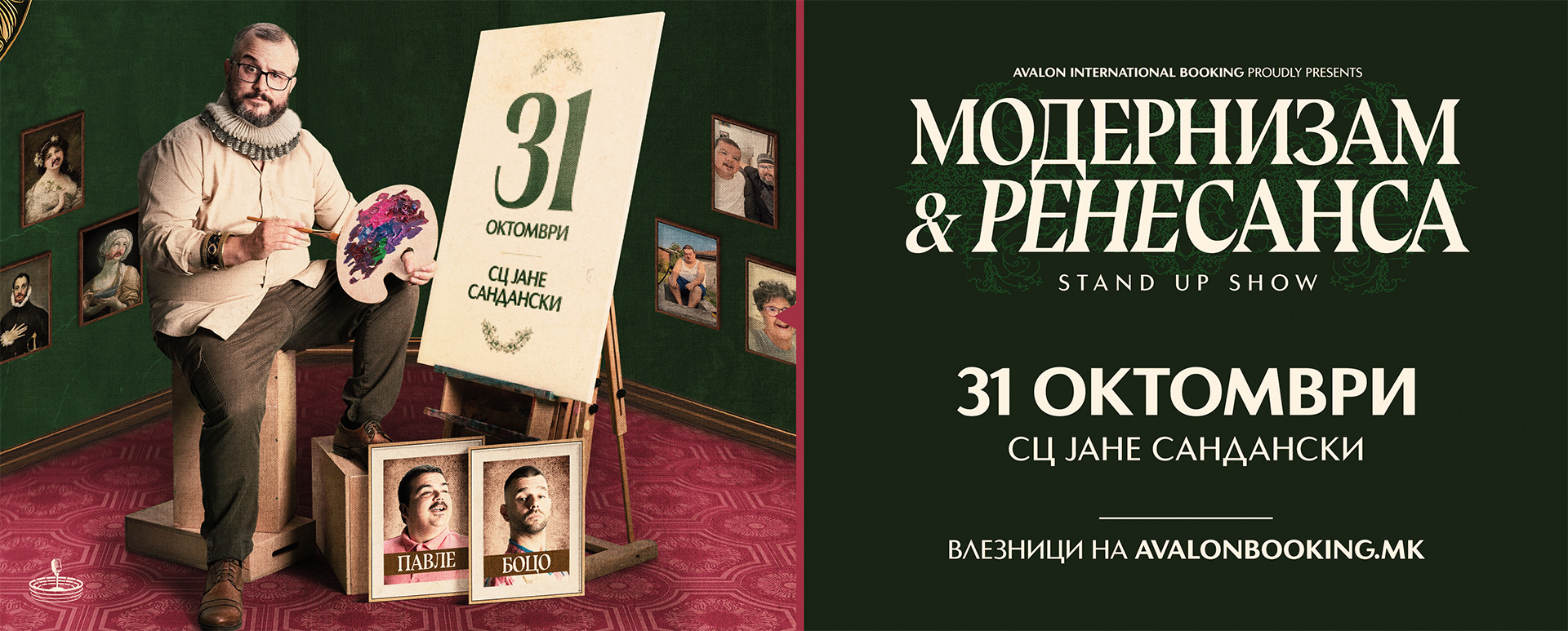 На 31 октомври во 20:00 часот, во СЦ „Јане Сандански“, ќе се одржи уникатното стенд ап шоу „Модернизам и Ренесанса“. Оваа есен, проектот што се смета за еден од најквалитетните во својата индустрија, ќе го однесе публиката на едно необично и забавно искуство со чуден хумор и неверојатни моменти на сцена.