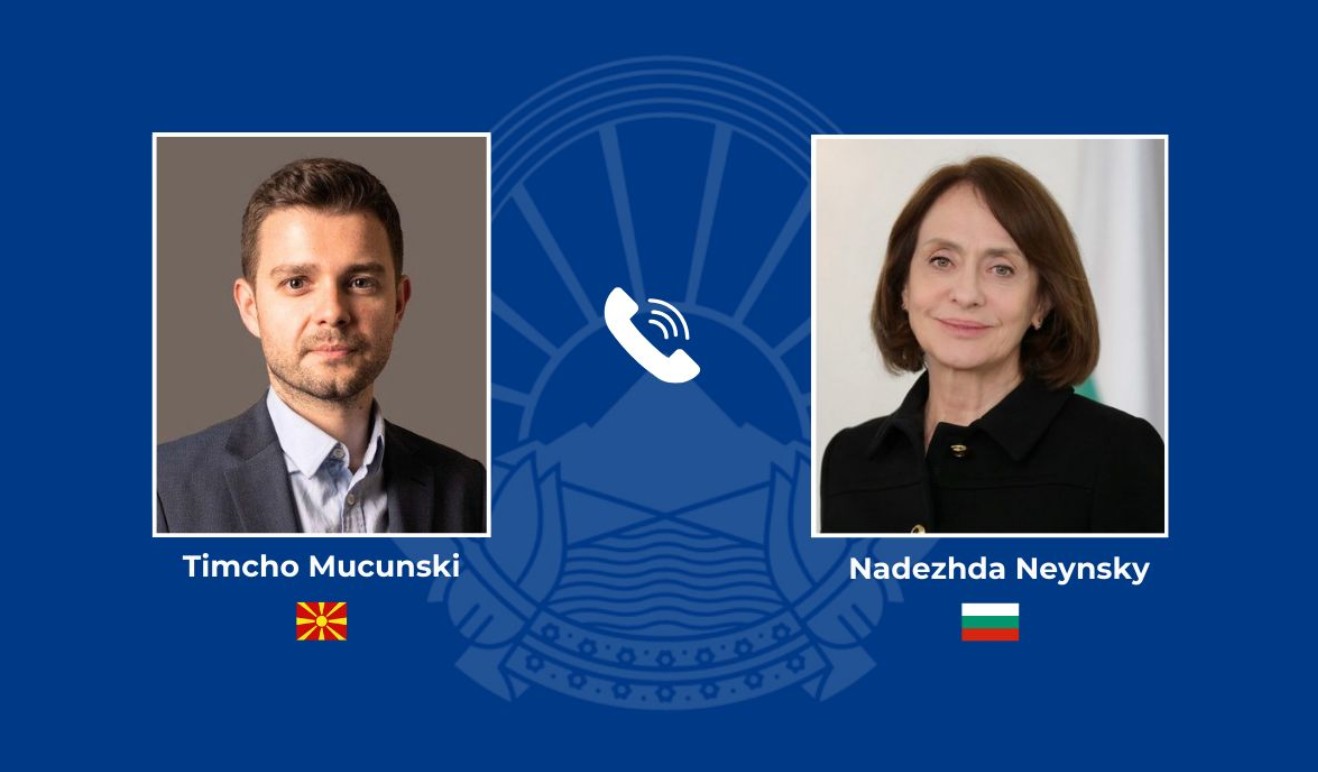 Министерот за надворешни работи и надворешна трговија Тимчо Муцунски соопшти дека на 20 февруари остварил телефонски разговор со новоименуваната шефица на дипломатијата на Бугарија, Надежда Нејнски. Според неговата објава, во разговорот ѝ честитал за именувањето и ѝ посакал успех на функцијата, нагласувајќи дека односите меѓу двете држави треба да се градат врз принципи на добрососедство, пријателство и конструктивна соработка.