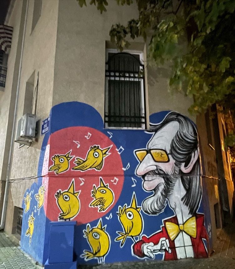 Ангелина Апсис со кратката објава на ФБ им го разубави денот на членовите на социјалните мрежи со постирањето на оваа фотографија од муралот посветен на легендарниот композитор и диригент Александар Џамбазов.