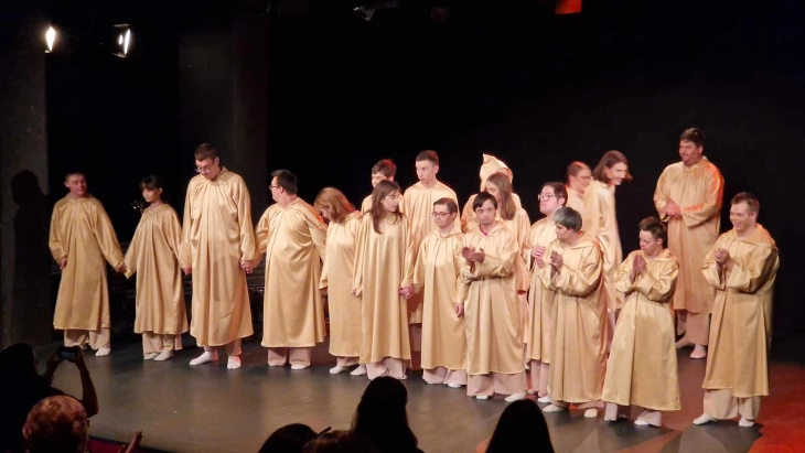 На малата сцена во Македонскиот народен театар лицата со Даунов синдром од Здружението „Трисомија 21“ – Скопје синоќа изведоа своја музичко-сценска претстава „Божествена рапсодија“.