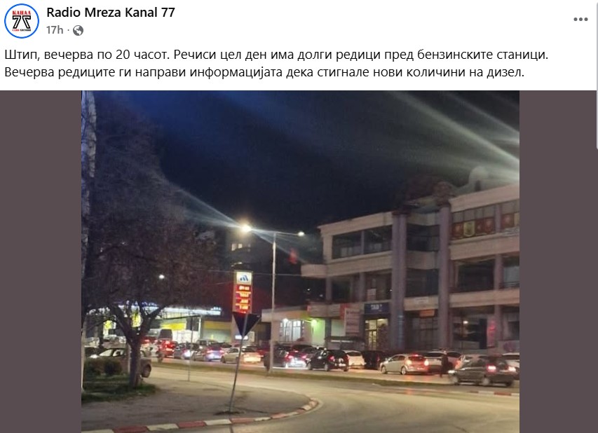 Паралелно со тоа, на социјалните мрежи се појавија реакции што ја хранат нервозата. Корисници на мрежата Х пишуваат: „Дизел на Макпетрол нема, во Ново Лисиче ја затворија бензинската пумпа“, како и „Што се случува со бензинските пумпи на Макпетрол? Зошто нема гориво?“. Во друга објава на Фејсбук се тврди дека во Штип „речиси цел ден има долги редици пред бензинските станици“, а вечерта редиците дополнително се зголемиле по информација дека стигнале нови количини дизел.