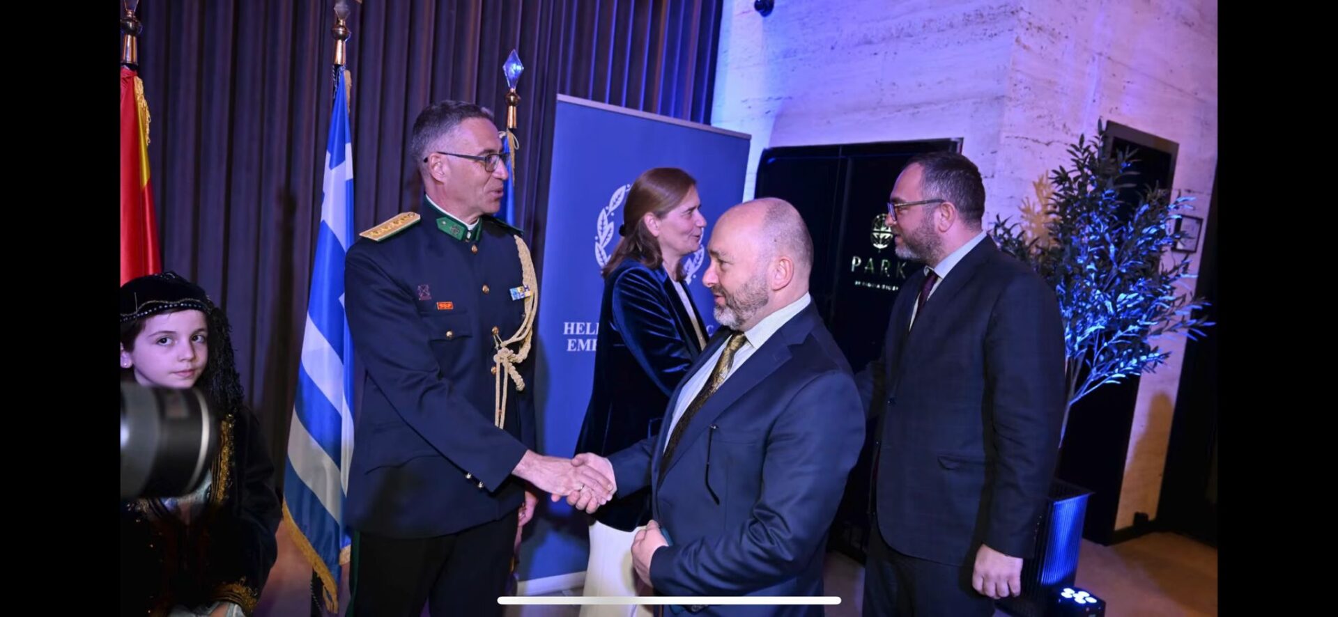 Посебен акцент беше ставен на Преспанскиот договор, кој беше опишан како темел на довербата меѓу Грција и Северна Македонија, со повик за негова целосна и доследна примена. Воедно, беше посочено дека економската соработка бележи напредок, при што билатералната трговија се приближува до една милијарда евра, а како значајни проекти беа наведени гасниот интерконектор, нафтоводот „Вардакс“ и Коридорот 10. На приемот настапи и танцовата група на Ликејон тон Елинидон од огранокот во Флорина.