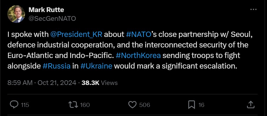 — Mark Rutte (@SecGenNATO) October 21, 2024