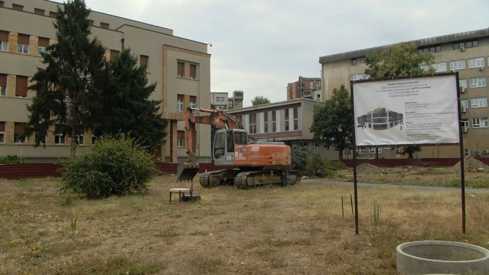 Целата зелена површина позади Собранието оди во заборав, пристигнат е багерот, исечени се и последните дрвја, а парцелата е оградена со лента, почнува изградбата на катна гаража.