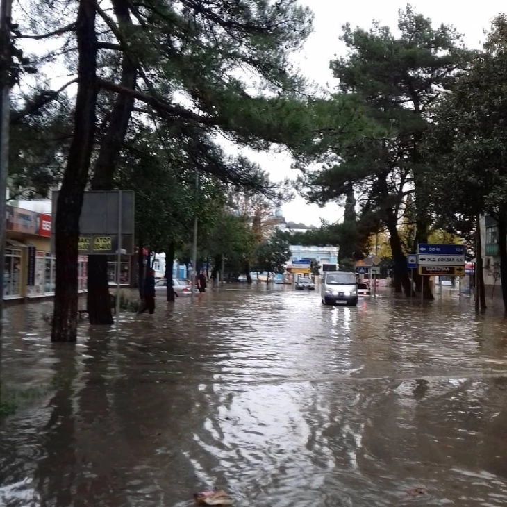 Фотографии споделени од руските новински агенции покажуваат затрупани патишта, потопени полиња и делумно поплавени куќи.