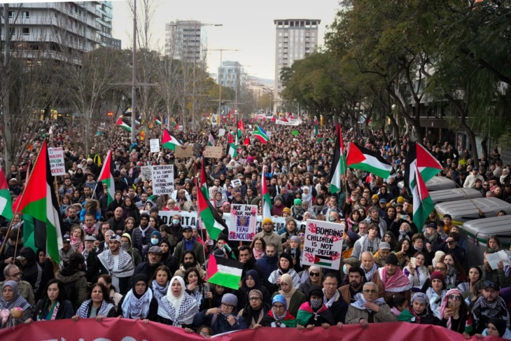 – Во стотина шпански градови денеска се одржаа демонстрации за поддршка на Палестинците, каде од меѓународната заедница беше побарано „да го запре геноцидот“ на Израел врз тој народ.