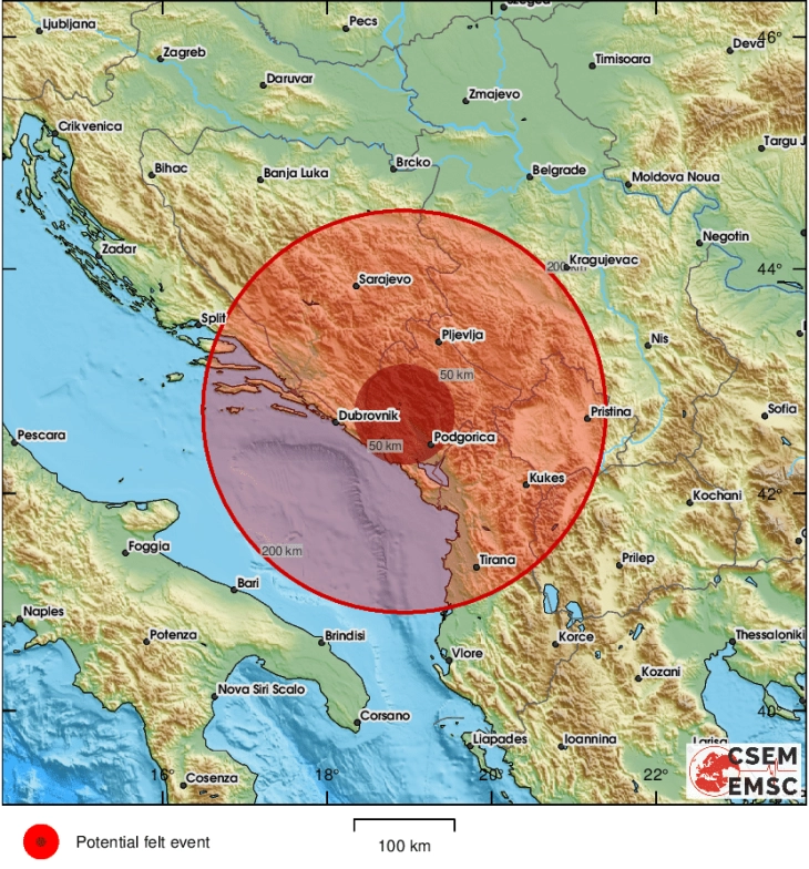 Нов земјотрес во Црна Гора, епицентарот во близина на границата со Босна и Херцеговина