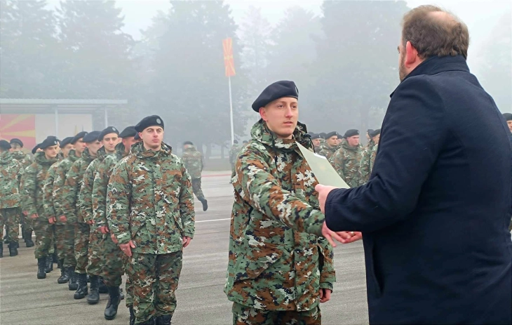 – На патот кон успехот не барајте скратени патеки и длабоки сенки. Дадете се од себе и ќе бидете најдобри, истакна Петровска и заедно со началникот на генералштабот, заменик министерот за одбрана, државниот секретар и командамтот на Командата за операции им ги врачија договорите на војниците.