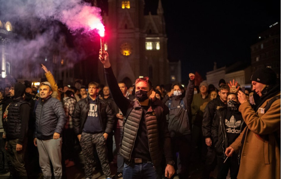Поради смртта на 14 лица на железничката станица во Нови Сад, вчера во 18 часот започна голем граѓански протест. По обраќањето на организаторот, демонстрантите се упатија кон Градското собрание. Атмосферата особено се вжешти пред просториите на СНС и пред Градското собрание, каде маскирани лица фрлаа со камења и боја.