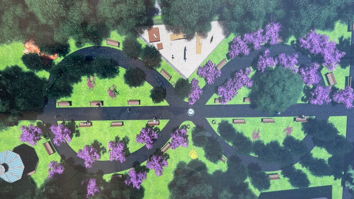 Од поставената табла од птичја перспектива е претставен и партерниот изглед на новиот парк кој што се протега помеѓу бул. Илинден и реката Вардар, на потегот од улицата „Никола Парапунов“ до „Љубљанска“ во Општина Карпош.