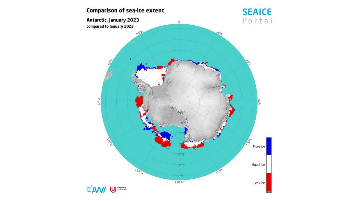Германскиот институт Алфред Вегенер (AWI) вчера соопшти дека покриеноста со мраз на Антарктикот достигна рекордно ниско ниво на 8 февруари, при што сателитски податоци забележаа површина од само 2,2 милиони квадратни километри мраз што го покрива Јужниот, односно Антарктичкиот Океан.