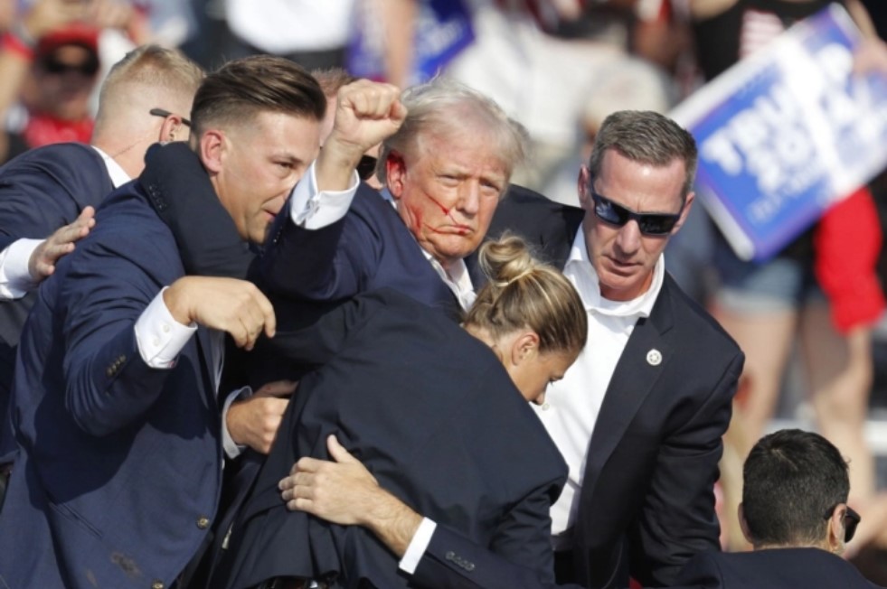 Поранешниот претседател на САД, Доналд Трамп околу пет минути откако го почна говорот на вчерашниот предизборниот митинг во Батлер, Пенсилванија, се слушнаа неколку истрели, а тој го држеше десното уво кога агентите на Тајната служба се упатија кон бината и го легнаа под бината, штитејќи го со своите тела.