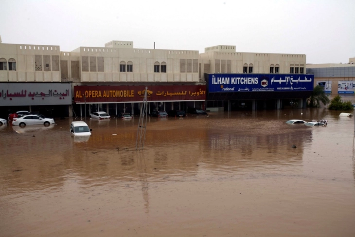 Обилниот дожд предизвика поплави и во главниот град на Обединети Арапски Емирати. Поради силниот ветер нарушен е и авиосообраќајот на Меѓународниот аеродром во Дубаи.