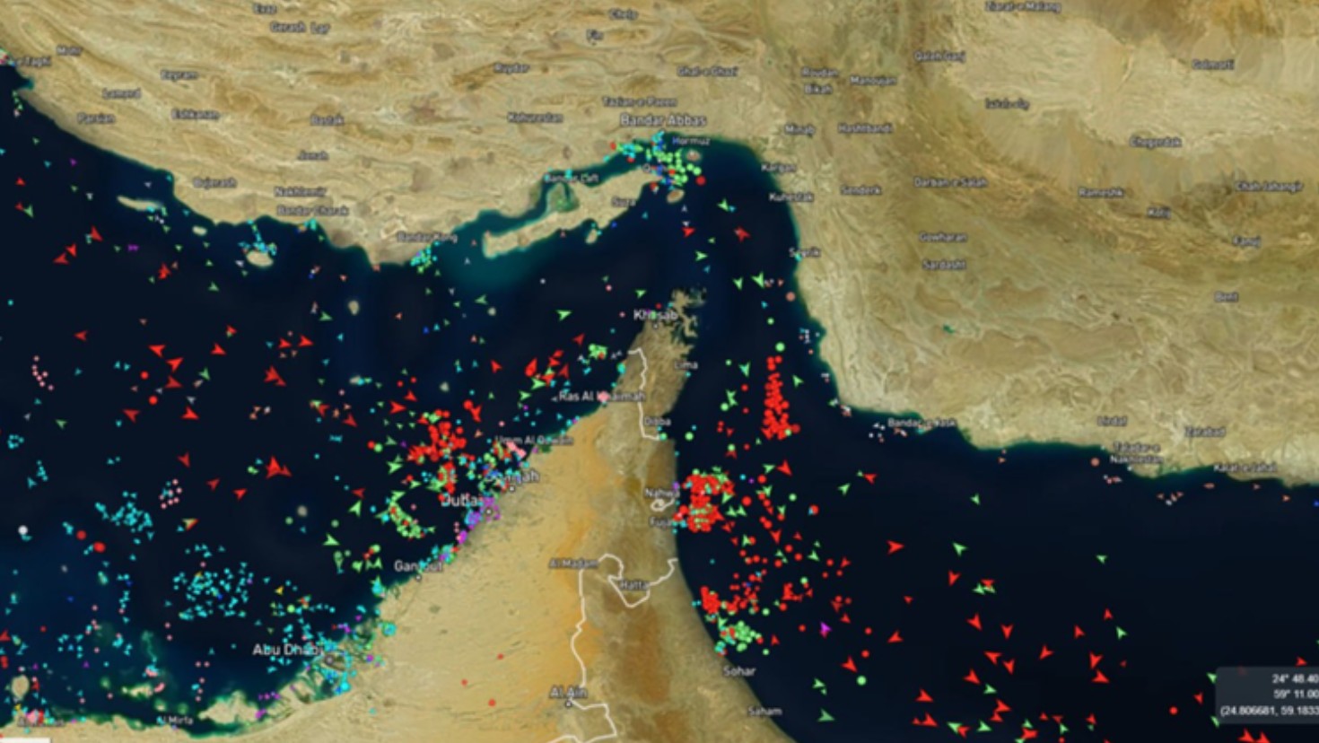 Во истиот ден беа пријавени и нови инциденти на море. Три бродови биле погодени од непознати проектили во поширокиот простор на Ормускиот теснец, при што на еден избувнал пожар, а поголем дел од екипажот бил евакуиран. Поморските безбедносни служби наведуваат дека сообраќајот низ теснецот нагло опаднал од почетокот на кризата, и тоа на рута низ која вообичаено минува околу една петтина од глобалното снабдување со нафта и гас.