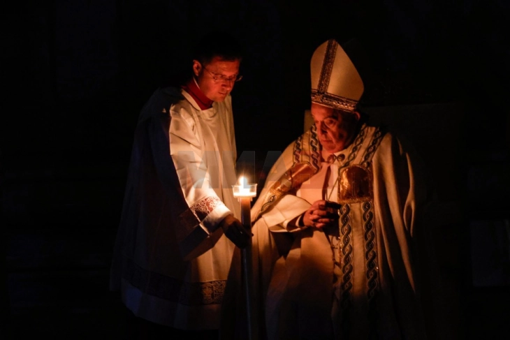 Папата Франциск денеска учествува на Велигденското бдение во Ватикан, откако вчера, во последен момент, го откажа учеството во поворката на Велики петок во Римскиот Колосеум.