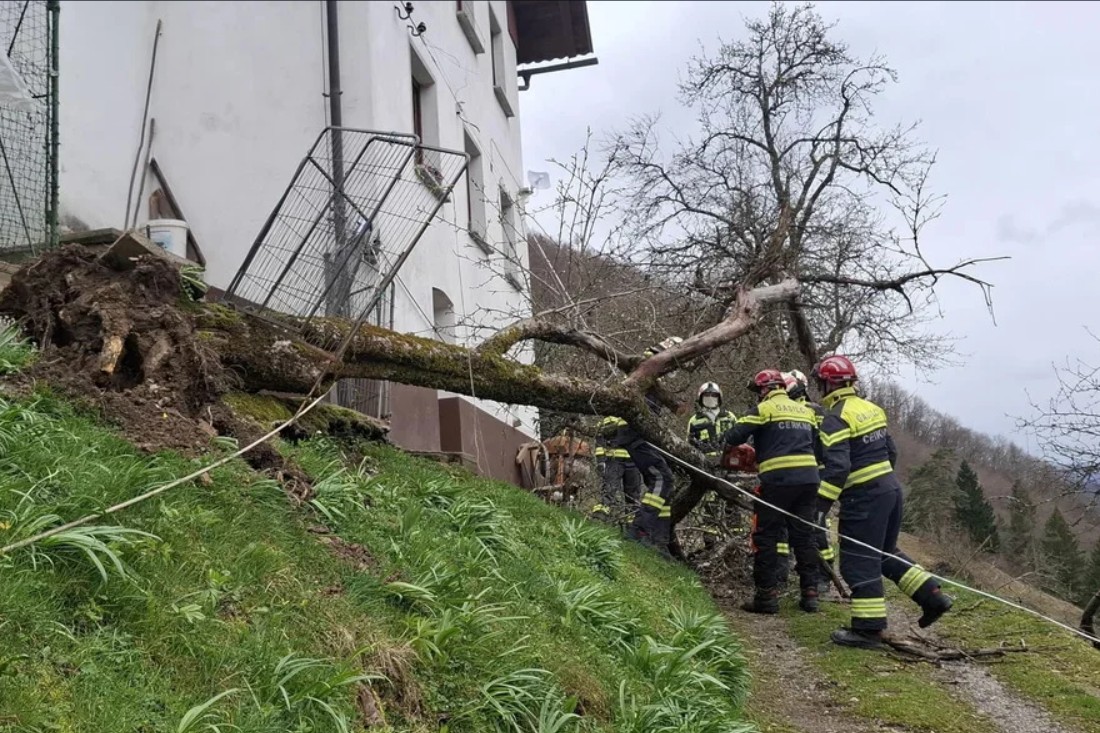 По извештаите за снег, силен ветер и прекини во сообраќајот во Хрватска, слични информации денеска доаѓаат и од Словенија, каде силната бура оштети покриви, урна дрвја и предизвика прекини во снабдувањето со електрична енергија. Во делови од земјата училиштата и градинките беа затворени, а надлежните служби повикаа граѓаните да останат во затворен простор и да избегнуваат непотребно движење.